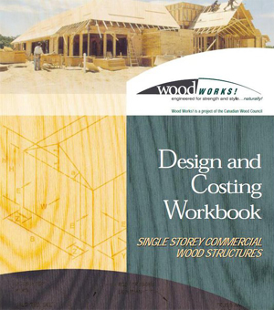 The document, "Design and Costing Workbook", by John Pao, P.Eng., Bogdonov Pao Associates Ltd., Ed Lim, P. Eng., and Cloverdale Truss Co. Ltd., discusses the feasibility and cost competitiveness of wood in commercial construction, as well as the design of the single storey wood structures. Section 1 - Introduction, gives background information, such as a layout, introducing the building example with typical elevations, plan views, and roof framing layouts, climatic loads, and buildings dimensions and geometry. Preliminary design, providing tables with a range of spans and loading conditions to assist in finding material quantities and a cost estimate for a single storey building. There is also a Design section, providing a detailed design example, with references to Wood Design Manual, Engineering Design in Wood, National Building Code of Canada, and NBCC User's Guide. Wood structures offer many advantages, such as competitive material costs, availibility of labour, ease of installation and material handling, shortened construction schedules, finishing options, and ability to create complex building shapes with relative ease.